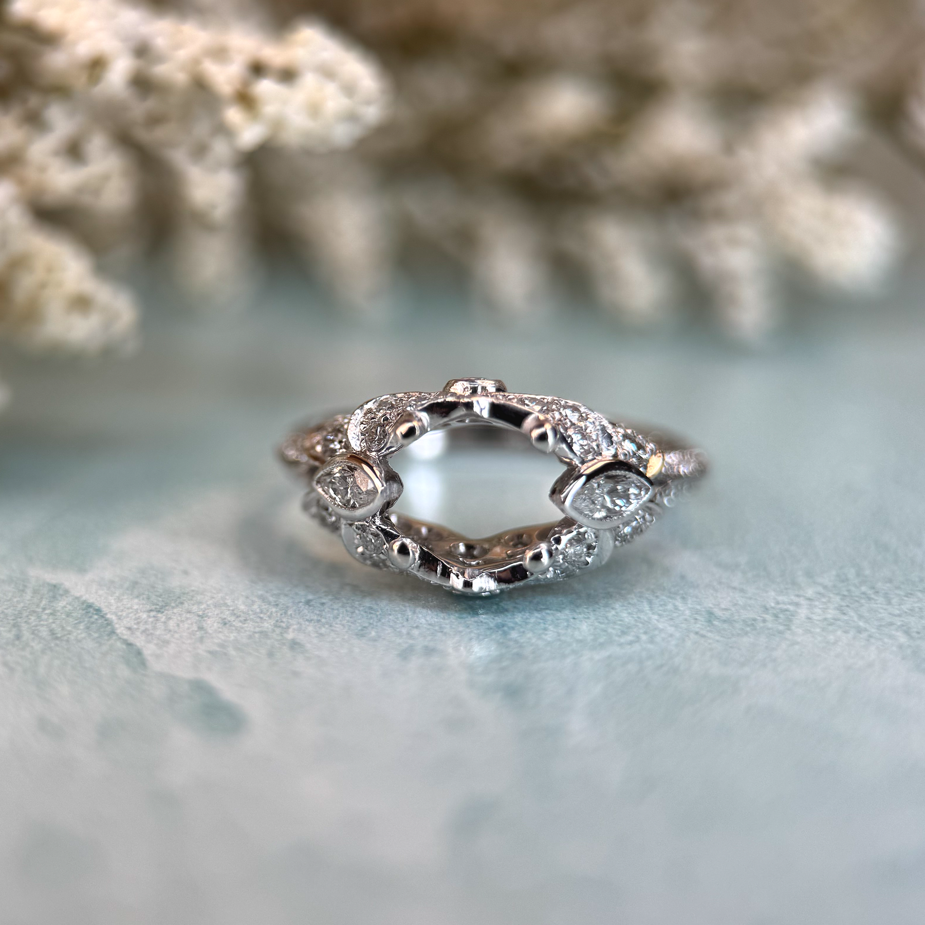 Welcome to the Mississippi Heritage Collection, Juniker Jewelry’s private collection of copyrighted handmade platinum Art Deco antique reproduction engagement rings and jewelry. Each piece of the collection is unique and handmade, so the pieces can be made to fit any size or shape center stone you choose.