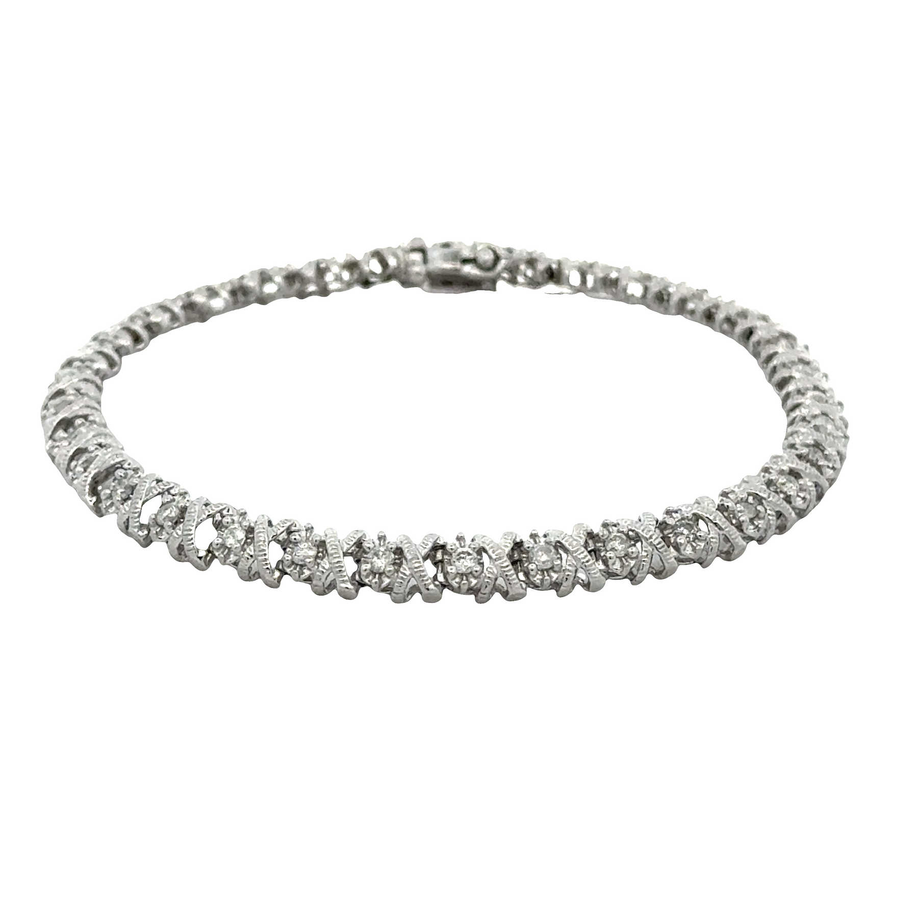 10K White Gold Tennis Bracelet - XO Motif (1.00cttw Diamonds)