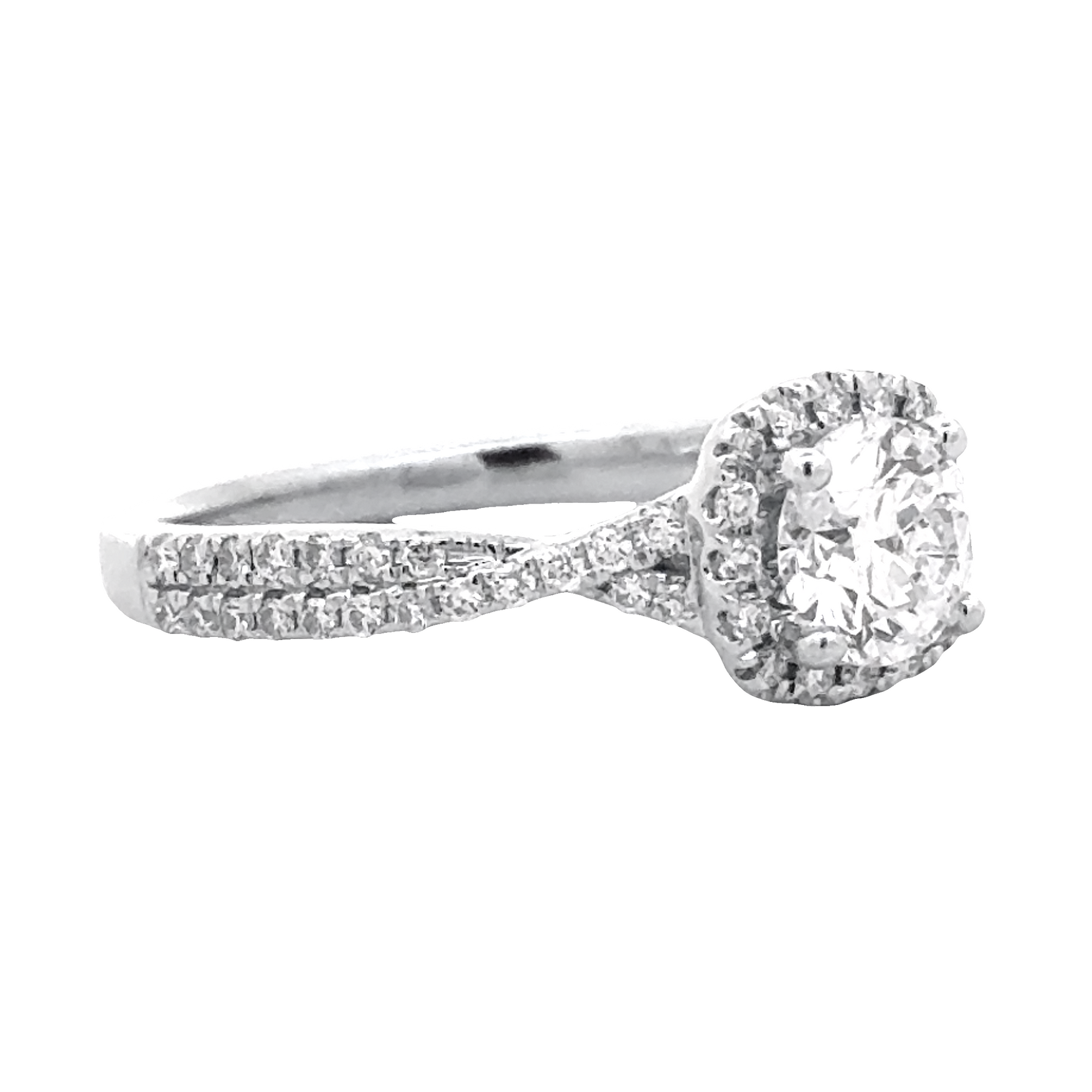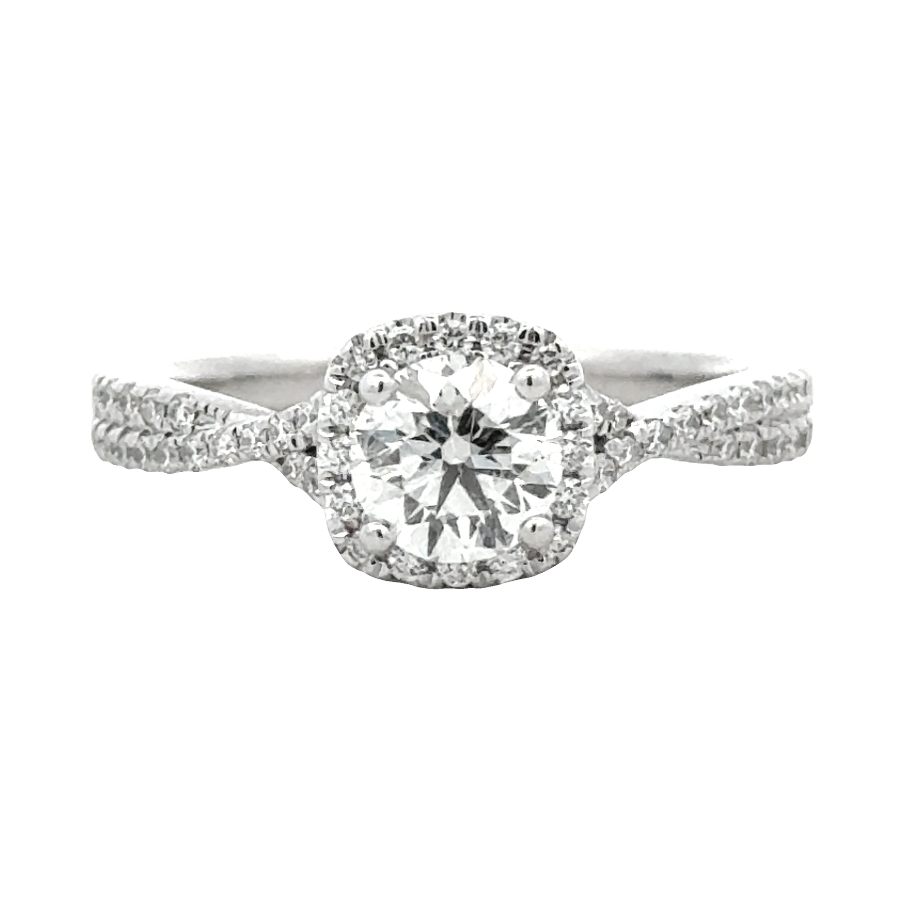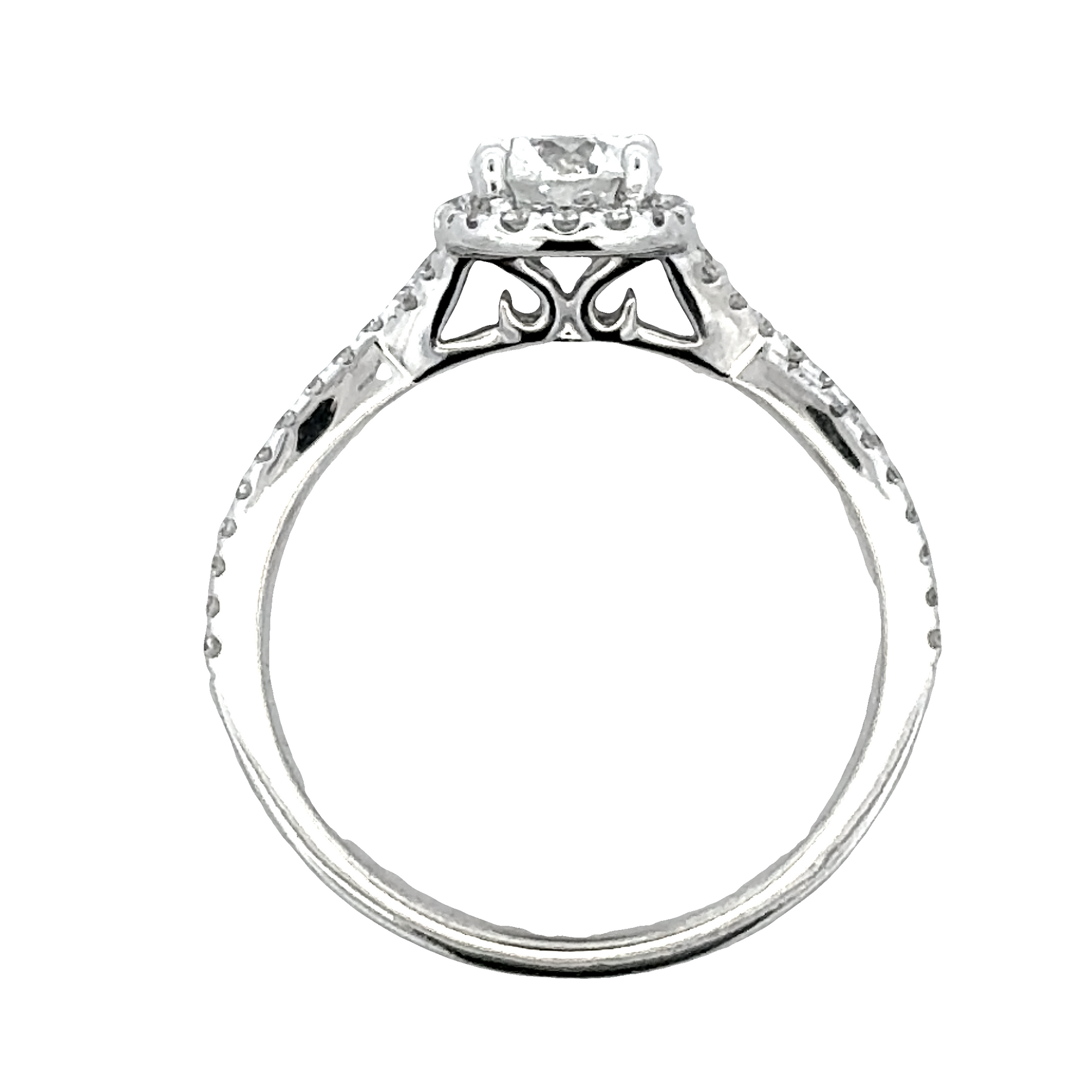 14K White Gold Diamond Halo Ring - 0.73ct Center Diamond