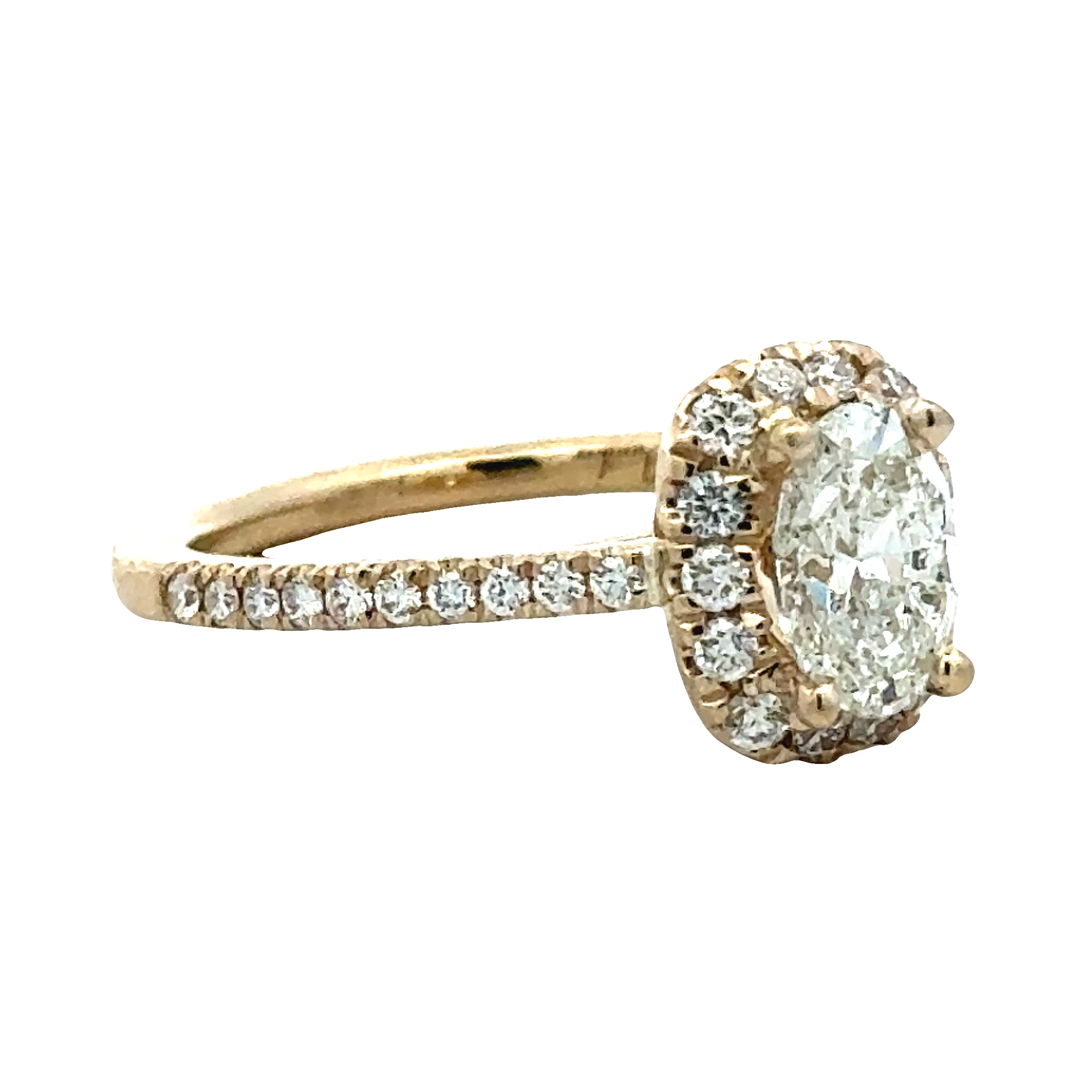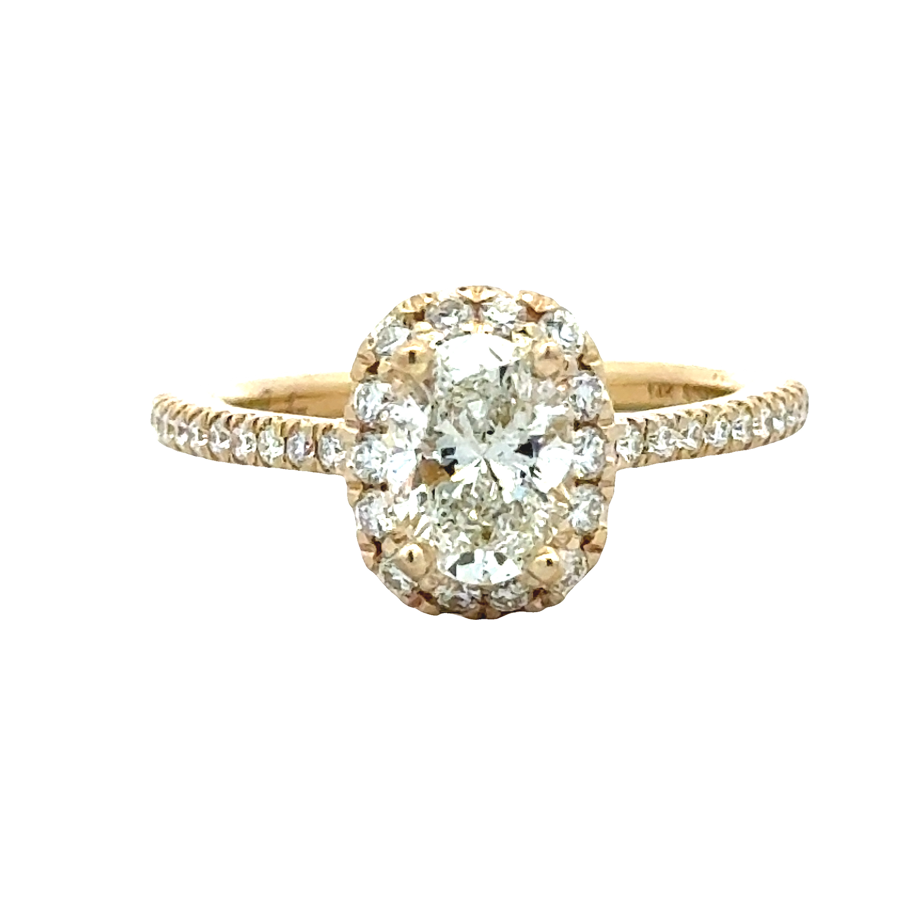 14K Yellow Gold Diamond Halo Ring - 0.96ct Center Diamond
