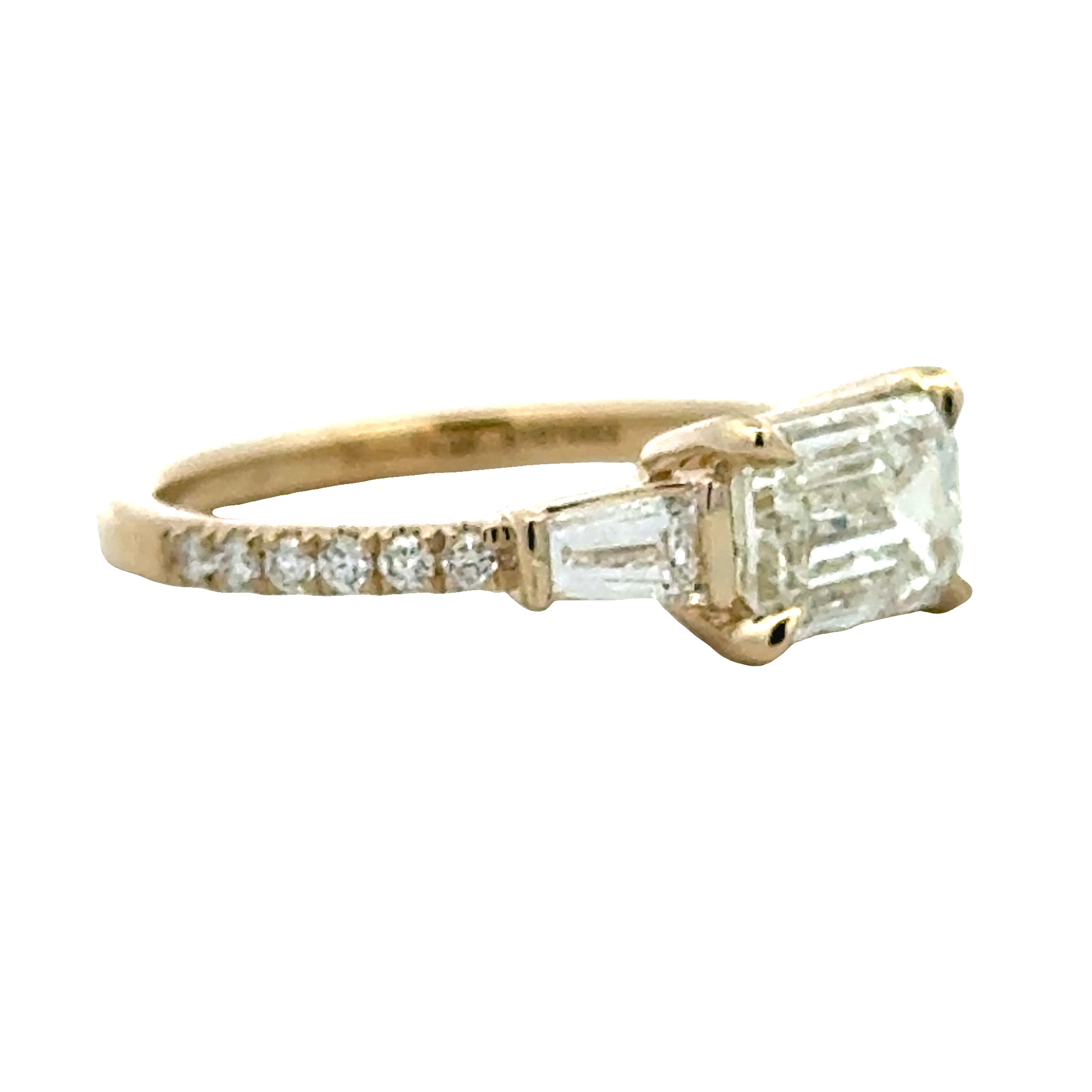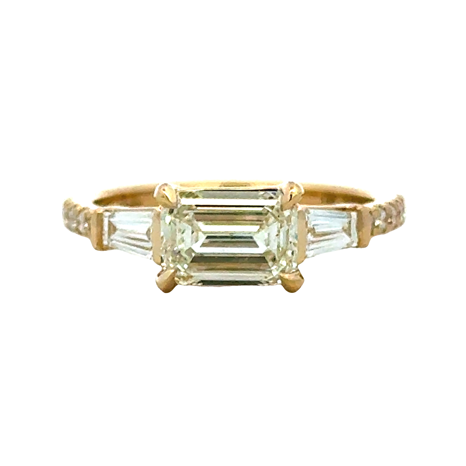 14K Yellow Gold Emerald Cut and Baguette Diamond Ring