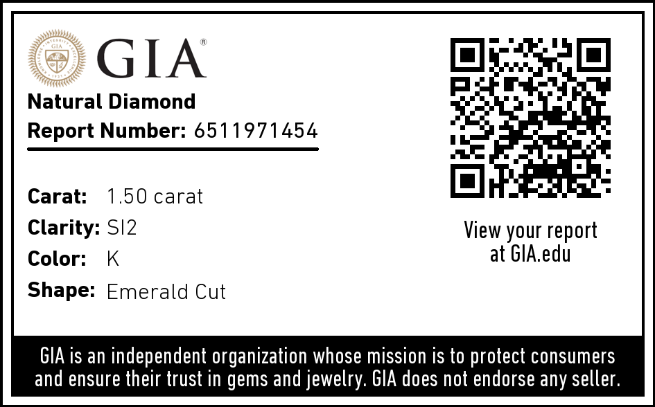 1.50ct Emerald Cut Diamond K/SI2 GIA
