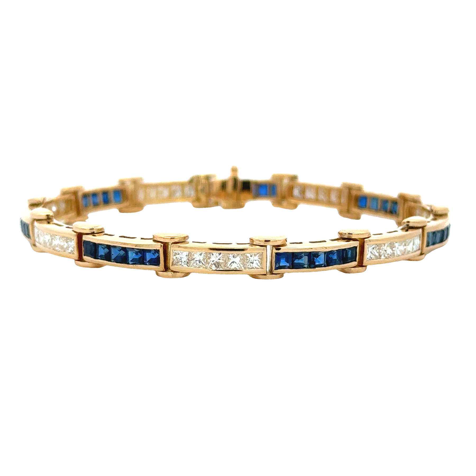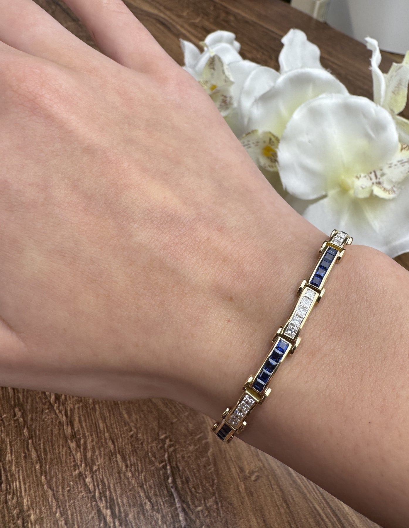 18KY Estate 3.50ct Diamond and 2.80ct Sapphire Bracelet