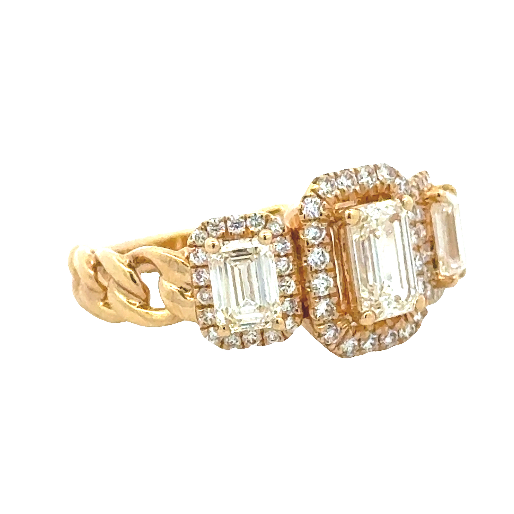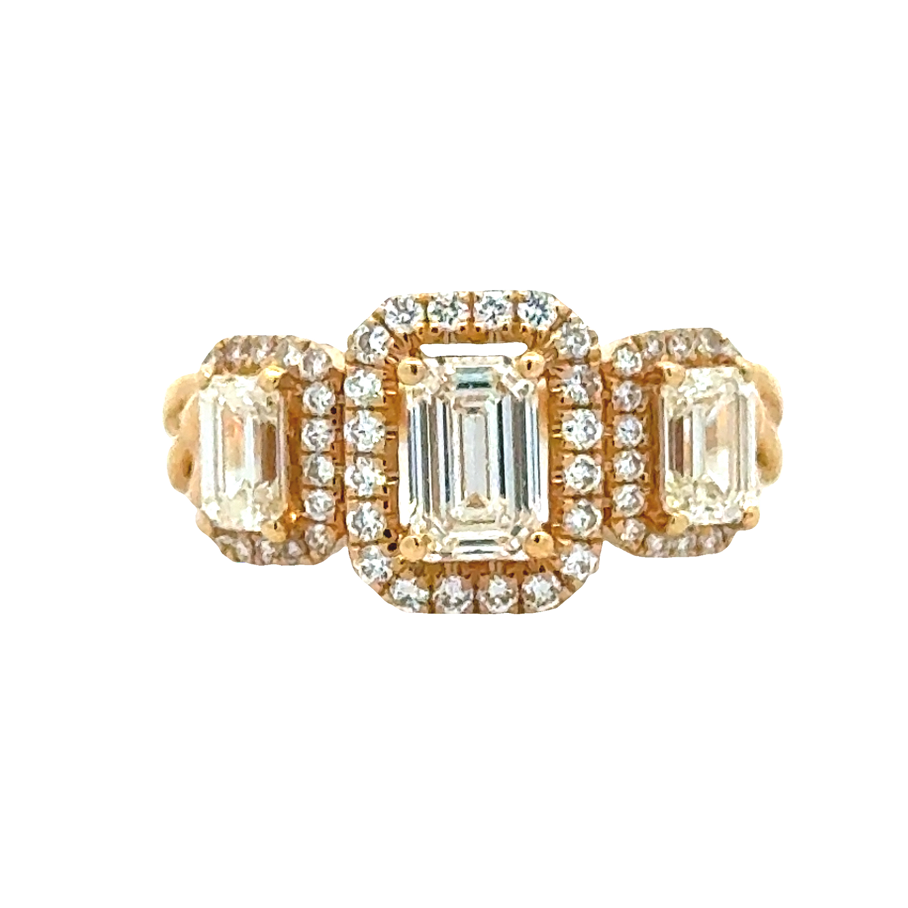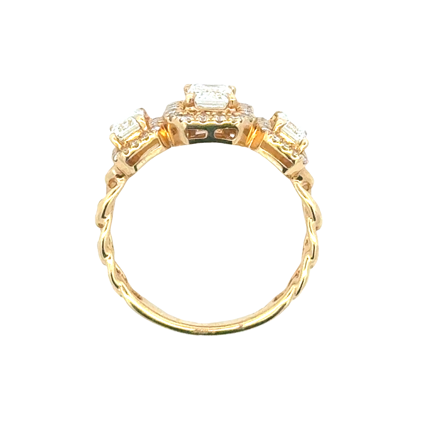 18ky Three Stone Halo Engagement Ring