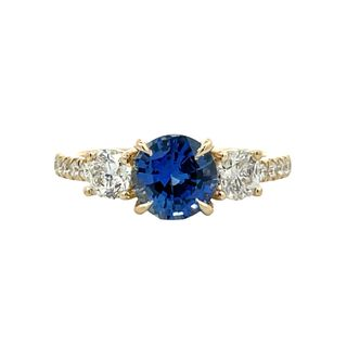 14KY Ring 1.48ct Sapphire 2=0.60tw Diamonds 0.17tw Diamonds